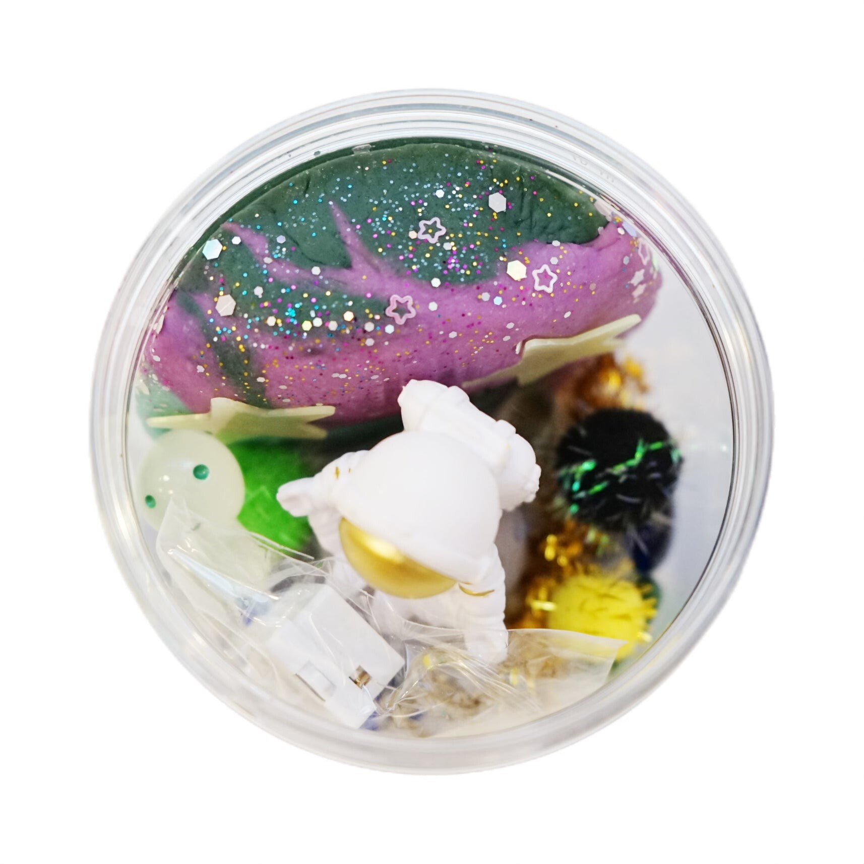 This portable jar is filled with a galaxy-inspired play dough that brings the wonders of outer space right to their fingertips.